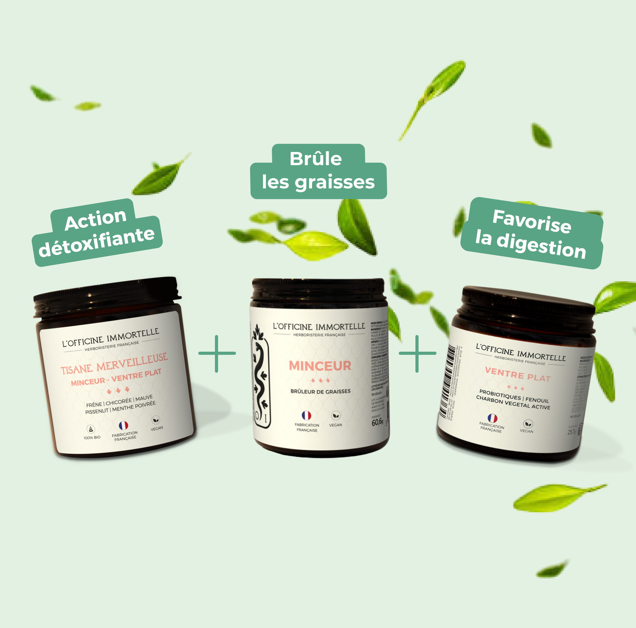 Découvrez notre Cure Ventre Plat Express, le trio gagnant pour une silhouette affinée et un confort digestif optimal.